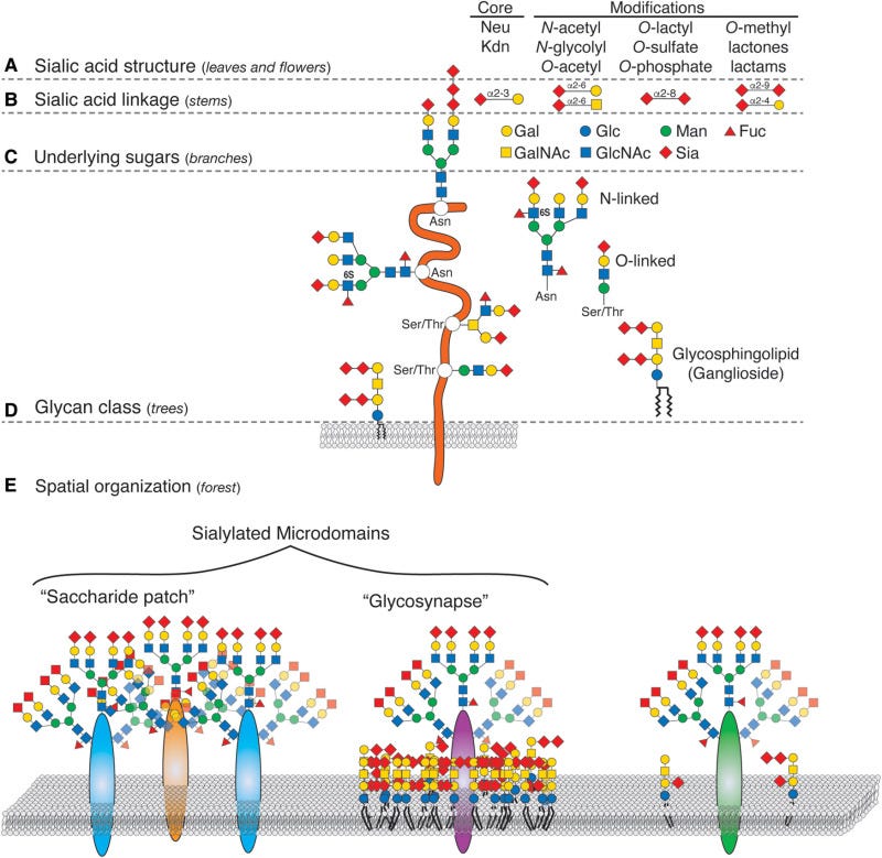Sialic acids are among the most complex parts of biology (and glycology) there is because these are sugar molecules that can “stick” together and change how the cells and receptors respond. Imagine these are custom-made Lego pieces that enable you to build incredibly complex Legos (cellularly speaking).