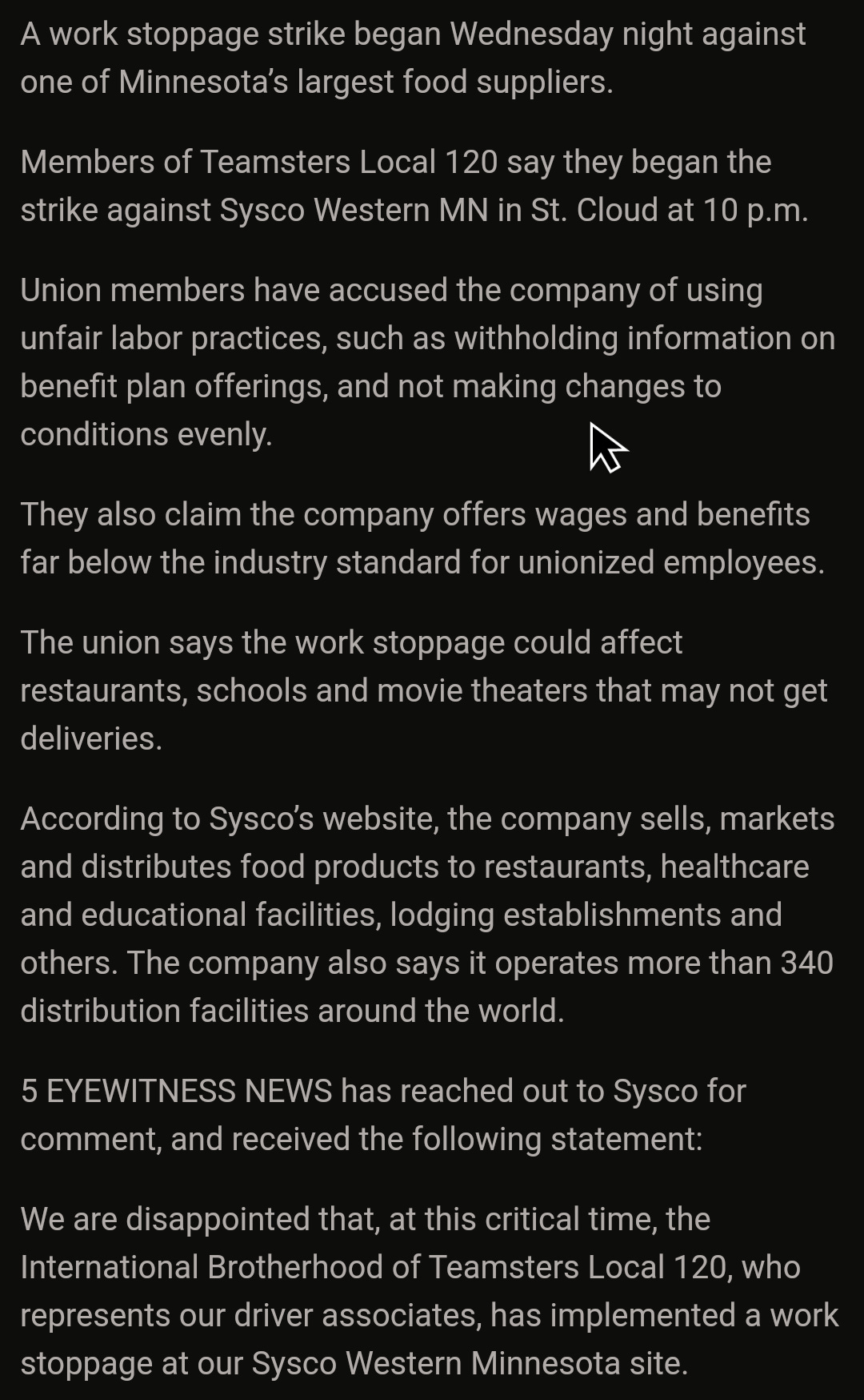 One of the biggest supplier for restaurants, schools, now faces a worker’s strike. Already facing supply shortages, high prices, inflation lowering demand, this add fuel to the fire. And it is an angle national security people should keep in mind and be very aware. Any non-state or state actor could use this to disrupt an entirely brittle system.