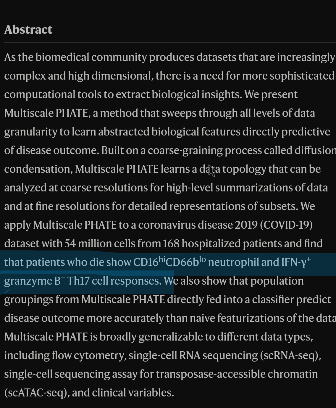 Now, translating from bioinformatics to normal. By using a complex algorithm, a “supercomputer” to go through all available data (a huge amount), they found that the exact pathway drives disease and severity.