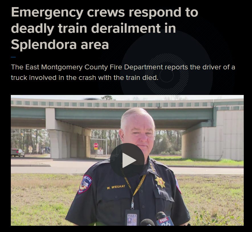 The East Montgomery County Fire Department reports a man driving an 18-wheeler involved in the crash with the train died.